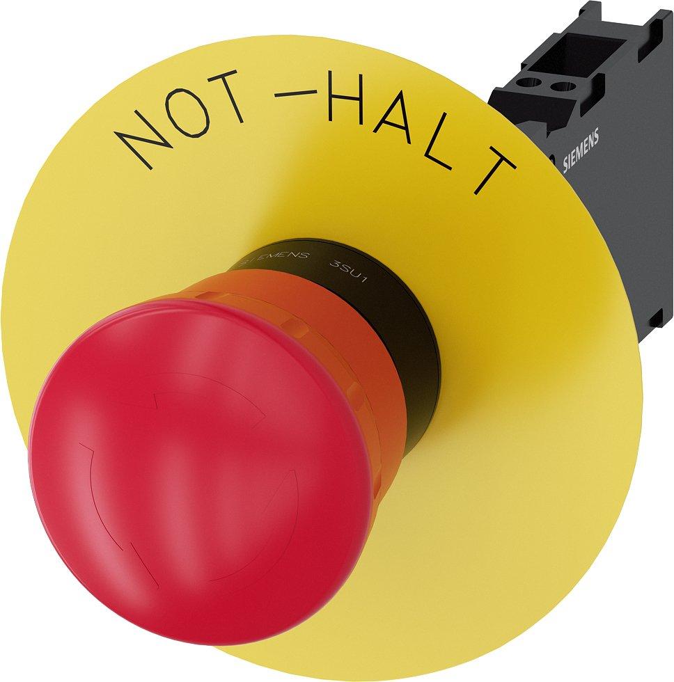 3SU1150-1HB20-3FH0, Not-Halt-Pilzdrucktaster, 22mm, rund, Metall, hochglanz, rot, 1S+1Ö