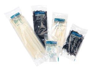 Der schwarz UV-beständige Ty-Rap Stahlnasenkabelbinder aus Polyamid 6.6 ist in mehreren Längen und Breiten und unterschiedlichen Zugfestigkeiten erhältlich. Diese Baureihe ist speziell für Installationen im Außenbereich geeignet. Der Kabelbinder ist in recycelbaren Kunststoffbeuteln mit Eurolochung verpackt und beinhaltet 2% Carbon für Militärspezifikationen. Die korrosionsbeständige, antimagnetische Stahlnase aus dem Edelstahl Typ 316 im Kabelbinderkopf garantiert den stärksten und sichersten Halt, der am Markt zu finden ist. Der leistungsstarke und zuverlässige Ty-Rap kann unter widrigsten Bedingungen wie unter Vibrationen, Hitze oder Kälte eingesetzt werden. Die abgerundeten Kanten und Konturen des Kopfes und des Binders sorgen für eine anwenderfreundliche Handhabung und verhindern, dass die Isolation der Kabel und Leitungen durch scharfe Kanten oder Verzahnungen beschädigt werden. Zudem reduziert der glatte Körper ohne Rasterzähne oder Rillen die Zahl überbeanspruchter Stellen. Die leichte Noppung auf der Innenseite des Bandes gewährleistet einen festen Sitz des Binders auf dem Kabelbündel. Eine große Auswahl an Zubehör ergänzt das Sortiment.