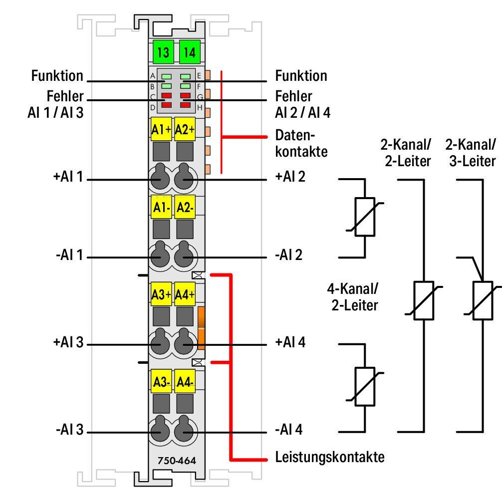 Es kann als 2-Kanal- (2- und 3-Leiter-Technik) oder 4-Kanal- (2-Leiter-Technik) Modul betrieben werden.