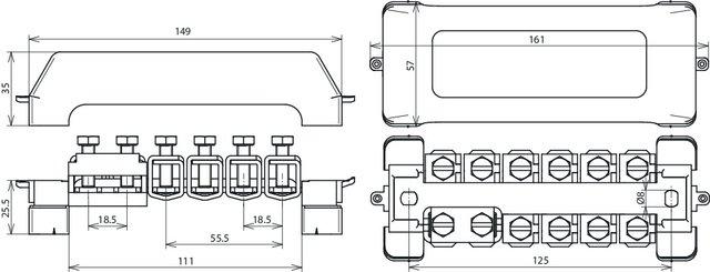 | Anzahl der Anschlüsse Leitung bis 6 mm² starr |