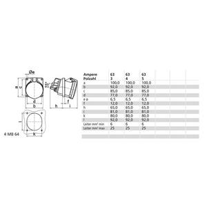 136/CEE-Anbausteckdose 63A400V6h5pIP44, Anbausteckdose gerade 63A 5p 400V 6h, IP44