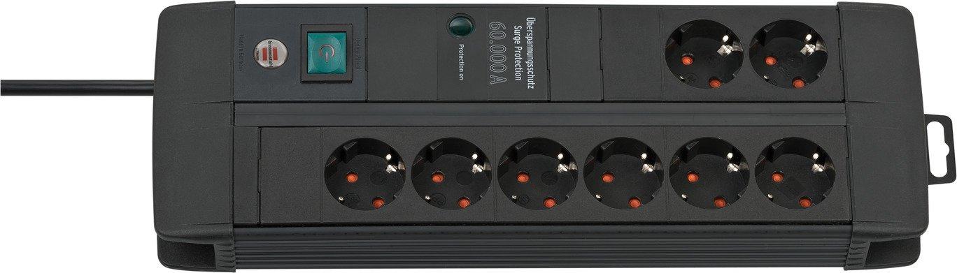 Premium-Line 60.000A Überspannungsschutz-Steckdosenleiste 8-fach Duo schwarz 3m H05VV-F 3G1,5* Schutz für Ihre Geräte vor Störungen im Stromnetz, wie Überspannungen, indirekte Blitzeinschläge oder Leitungsrauschen, mit einer maximalen Summe von Ableitströmen bis zu 60.000 A.* Intelligentes, auswechselbares Modul-Bausystem.* Sicherheitsschalter beleuchtet, zweipolig ein-/ausschaltbar. * Steckdosen mit erhöhtem Berührungsschutz.